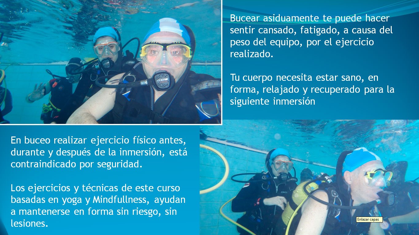 Como su nombre indica es el yoga en el entorno del buceo, más concretamente buceo con escafandra autónoma (botellas).